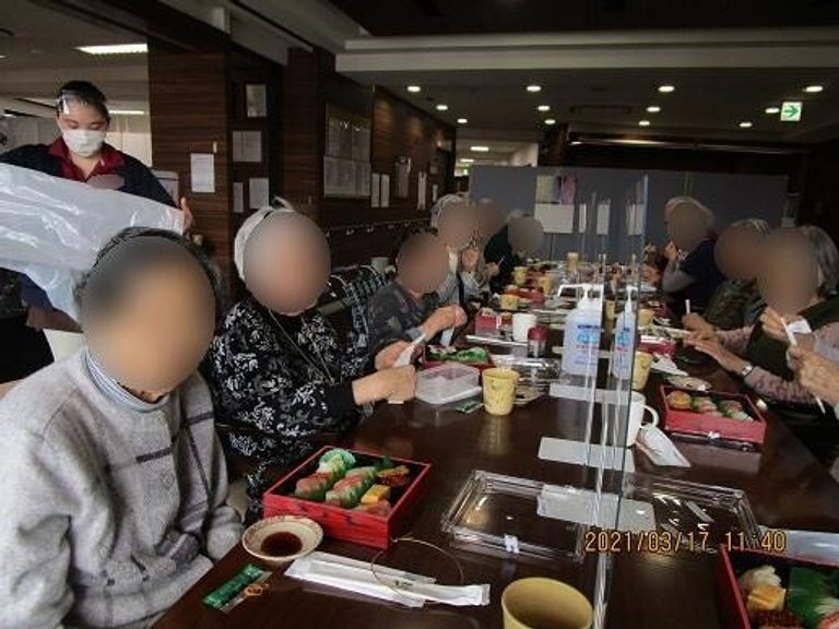 1階ロビーにてお食事をしていただきました。