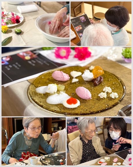 先日開催したアロマハンドバスとスイーツの会。この会は、食が細い方や飲み込みに不安がある方も安心して美味しく楽しめるように言語聴覚士と介護スタッフが一丸となって企画し開催いたしました。