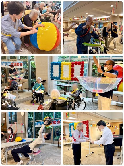 ご入居者の晴れやかな選手宣誓で始まり、パン食い競争や玉入れ、借り物競争では、皆様の笑顔と真剣な表情が輝きました。