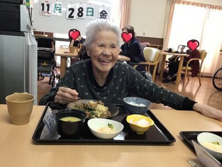 「ハンバーグ柔らかいわ~」と笑顔です(≧▽≦)