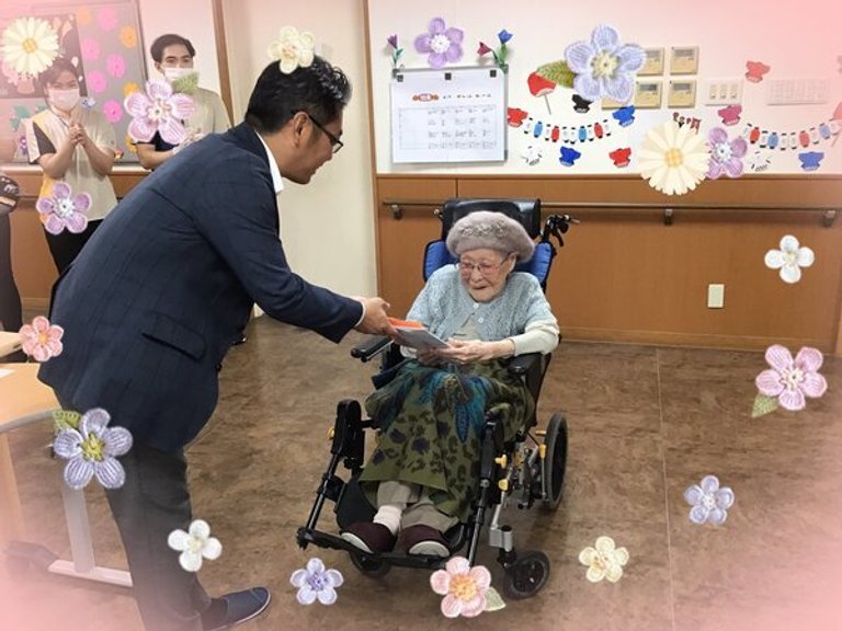 ご入居者のご長寿103歳のお祝いを持ってきてくださいました。