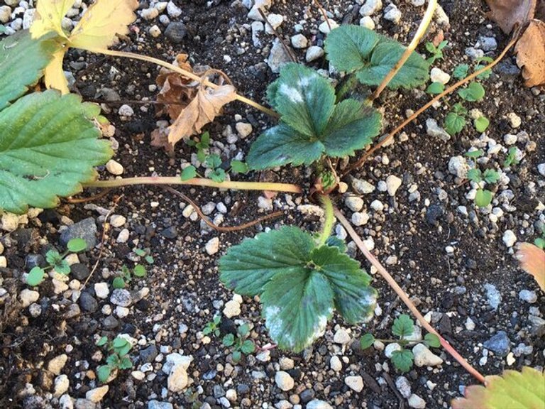 さやえんどうは花を咲かせており、いちごは新しい葉が出てきております!