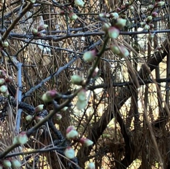 高石神社の梅の花がつぼみがふくらみはじめました。