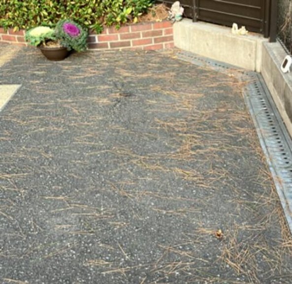 風が強かった朝の松葉の落ち葉になります。