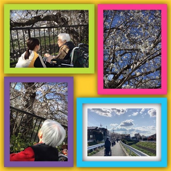 4月という事で、施設から徒歩10分くらいの所へお花見散歩へ行きました!