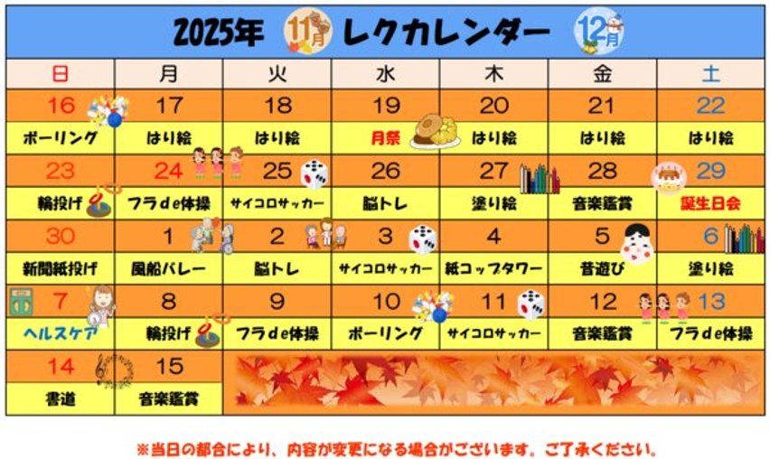 レクカレンダー【2025年11月16日~2025年12月15日】