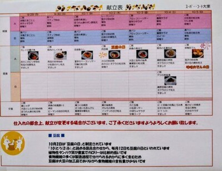 明日からの献立表をご紹介いたします
