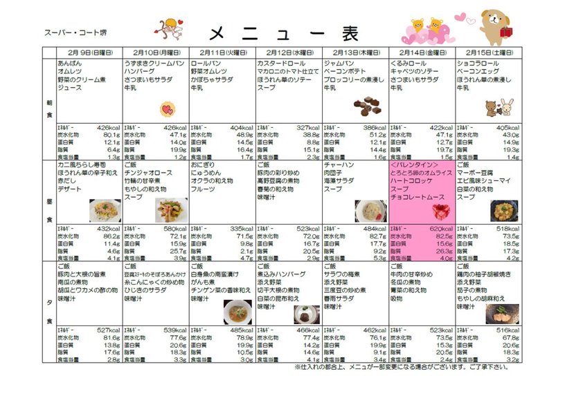 スーパーコート堺ではバレンタインメニューが提供されますよ♪