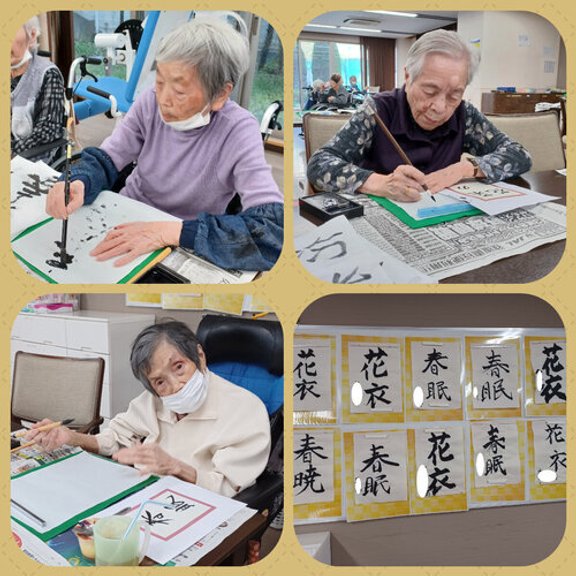 今日は書道レクリエーションのご様子と作品をお届け致します。