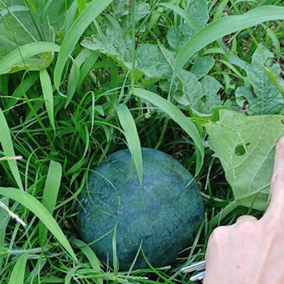 そんななか、施設の菜園ではスイカが2つ収穫できました。