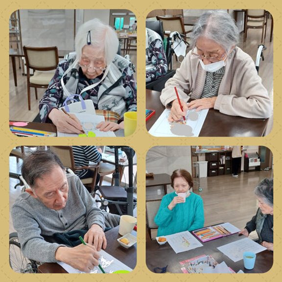 本日はカレンダー塗り絵レクのご様子をお届け致します。