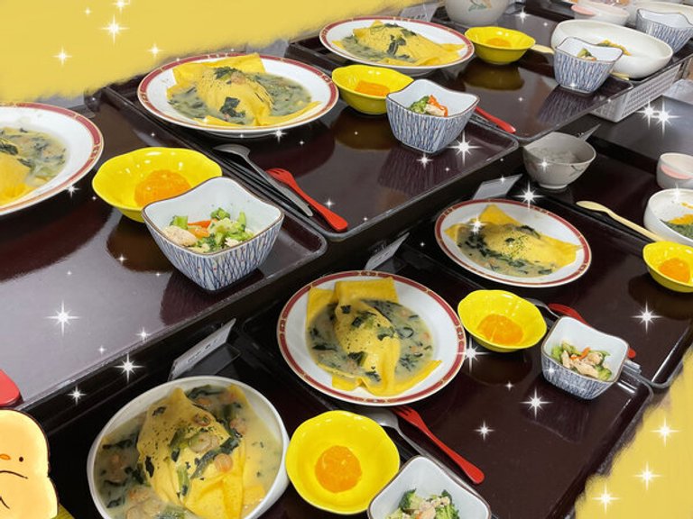 「エビとほうれん草のクリームオムライス」が提供されました!!