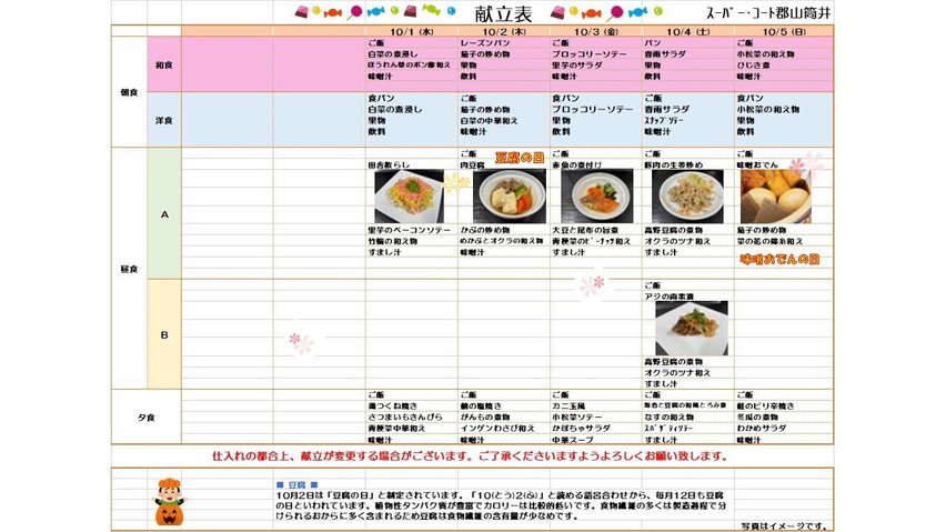10月献立表( ˶ˆ⤙ˆ˵ )