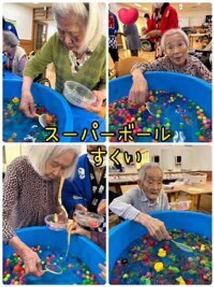 「子どもの頃を思い出すわね」と話しながら、皆様真剣な表情でスーパーボールをすくっていました!色とりどりのボールがキラキラと輝き、笑顔があふれます!