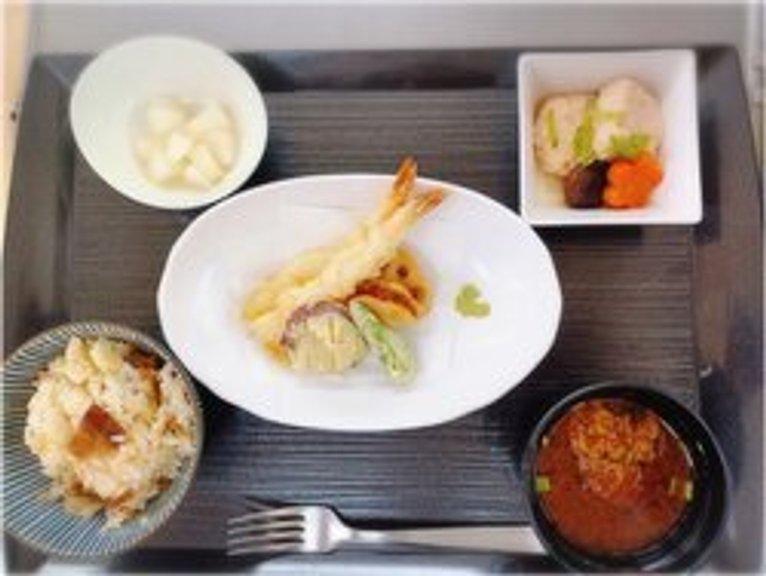 ・天ぷらの盛り合わせ:食感の良い海老、ほろ苦さが美味しいしし唐、シャキシャキとしたレンコンなど、揚げたてのサクサク食感をお召し上がりいただきました。