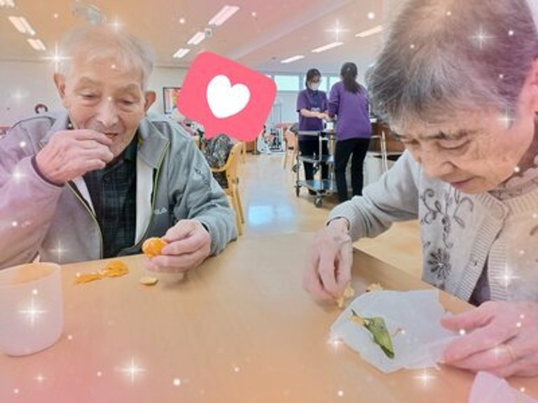 こちらはおやつの後に、お庭で収穫したみかんを召し上がっています。