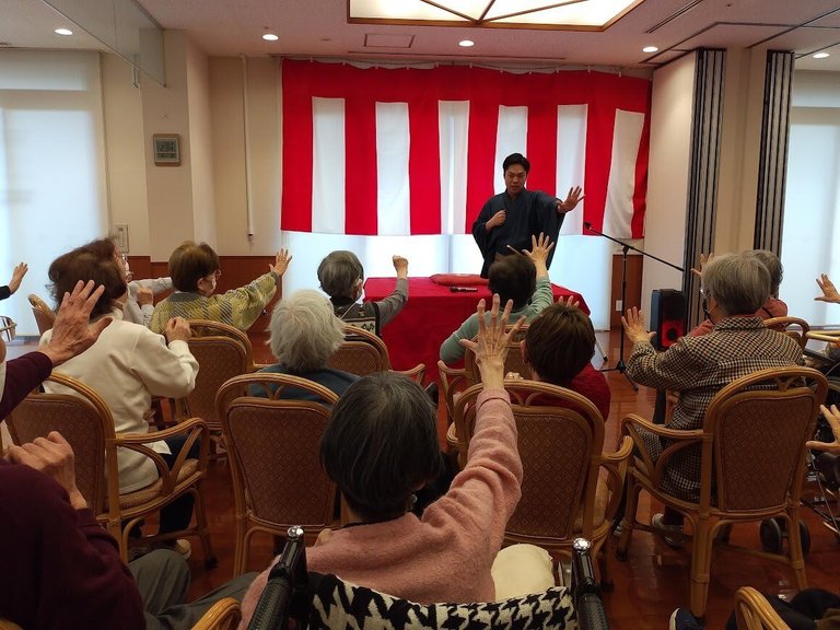 レクリエーション介護士2級の資格を持つ、桂 小文三さんは、落語だけではなく、頭の体操として「なぞかけ」や「大喜利」を取り入れるなどして、ご入居者さまを笑いの渦に引き込んでくださいました!