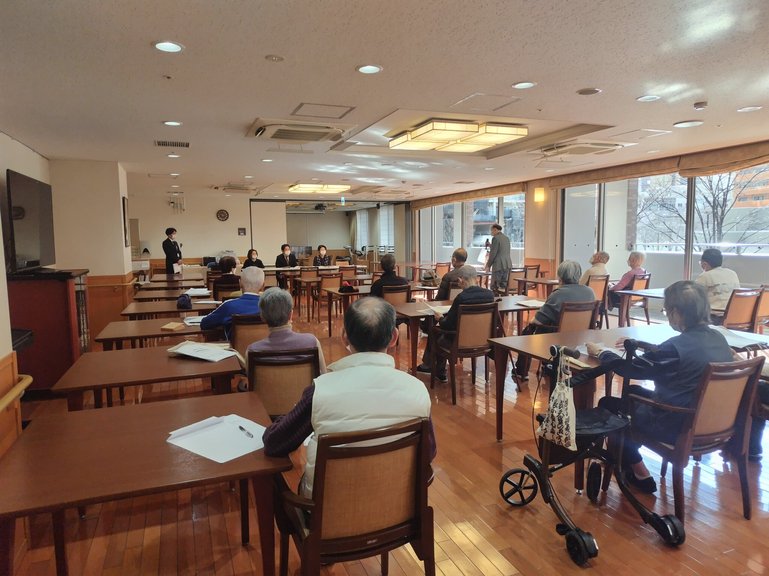運営懇談会では、職員紹介を初めとし、現在のベルパージュ大阪上本町の状況や体制、25年度からの変更事案のご説明をさせていただきました。事前にご入居者さまやご家族さまからいただいたご意見、ご質問に対する回答もお伝えさせていただき、今後の運営に反映してまいります。