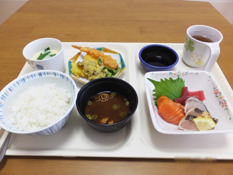 皆さま、良質の脂を蓄えたお造りに舌鼓♪サクサクカラッと揚がった天ぷらに満点笑顔!ほとんどのご入居者さまが完食されました。
