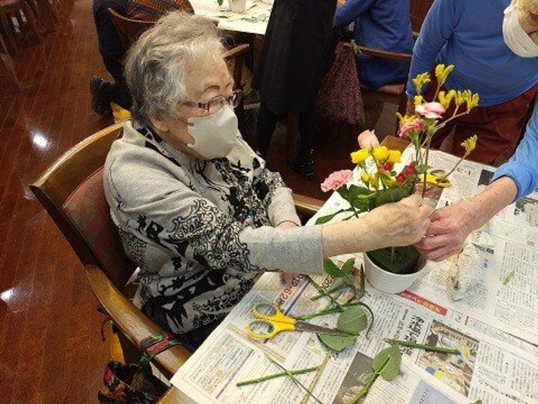 11月24日、ベルパージュ大阪帝塚山では、『フラワーアレンジメント』を行いました。