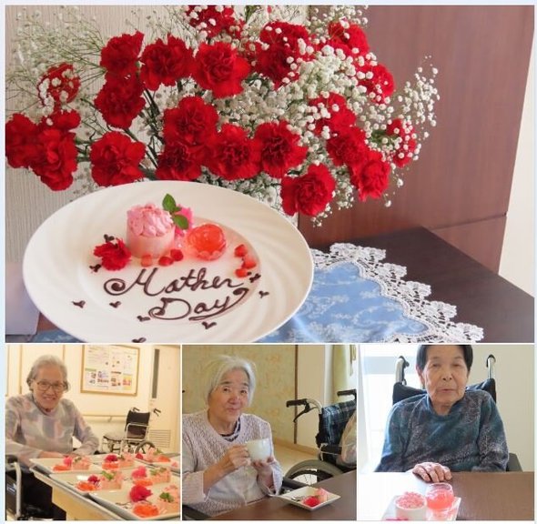 ご入居者のみなさんも「とてもきれいね~」と笑顔でおっしゃりながら、いつもとはまた違ったおやつの時間を楽しまれていました。