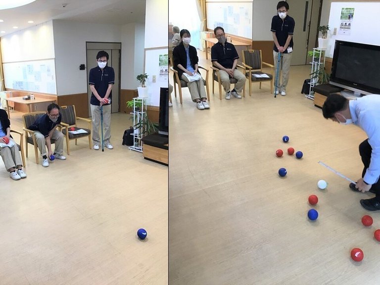 カーリングと似ておりますが、絶妙な駆け引きも必要となり、参加した職員皆で実際にプレーし、一喜一憂しながら理解を深めました。