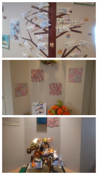 こんにちは、マザアス南柏です。今回は、2階フロアの装飾をご紹介です。空いている時間に『鯉のぼり』を思いのまま色を付けていただきました。また、装飾担当職員が、その月に合わせた装飾を廊下のコーナーなどをメインに飾り付けております。