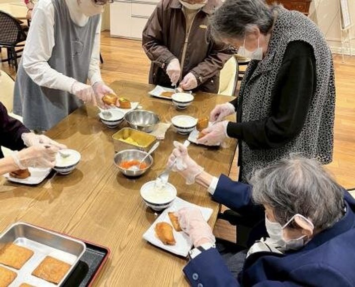 ロングライフ成城では、毎月開催しているクッキングデーがすっかり恒例イベントとなっています。今月のメニューは「オープンいなり寿司」です。