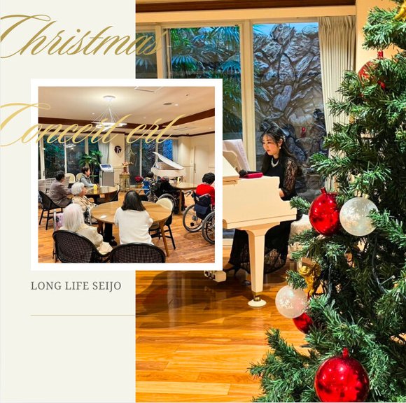 2024年12月19日、ロングライフ成城にて、ピアニストの大木雅子様をお招きし、心温まるクリスマスコンサートが開催されました。大木様の華麗な演奏がホーム全体に響き渡り、特別なひとときをお届けすることができました。