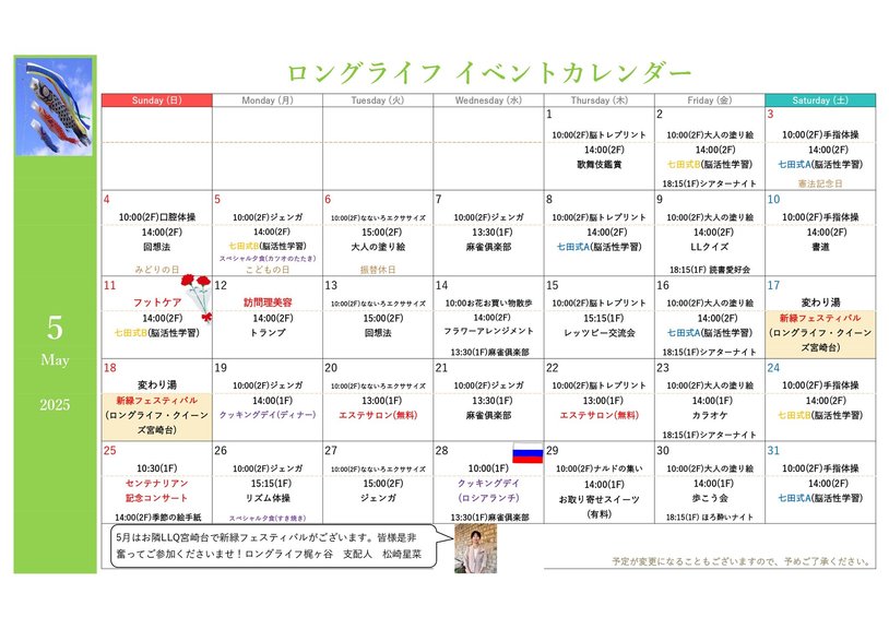【5月のイベントカレンダー】新緑とお祝いのイベント