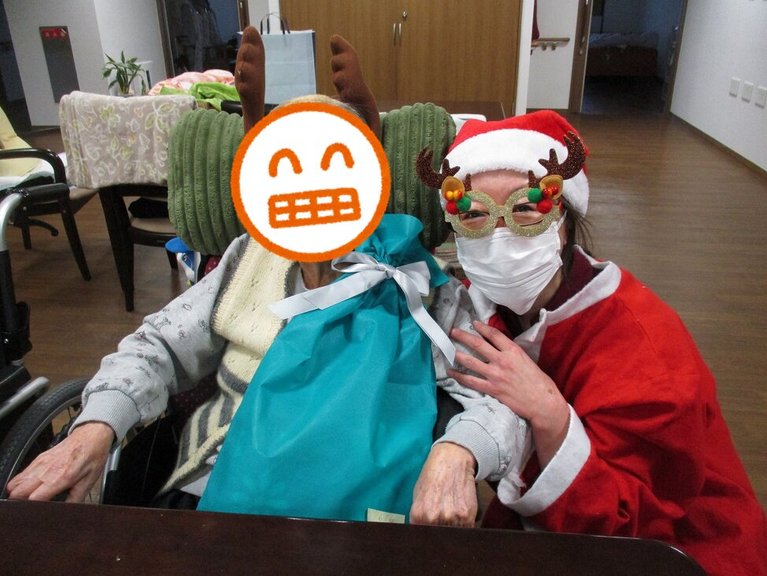 ジュースやケーキでお祝いし、心を込めたプレゼントのお渡しをすれば、皆さんにっこりと笑顔で受け取ってくださいました。皆さんの喜びがケアハートサンタにとっての最高のプレゼント(^^♪