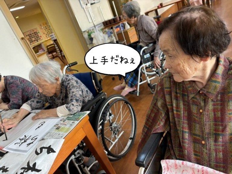 ご参加は自由です。ご自分は書かなくとも、『わぁ!上手だねぇ!』と声をかけたり見入ったり。