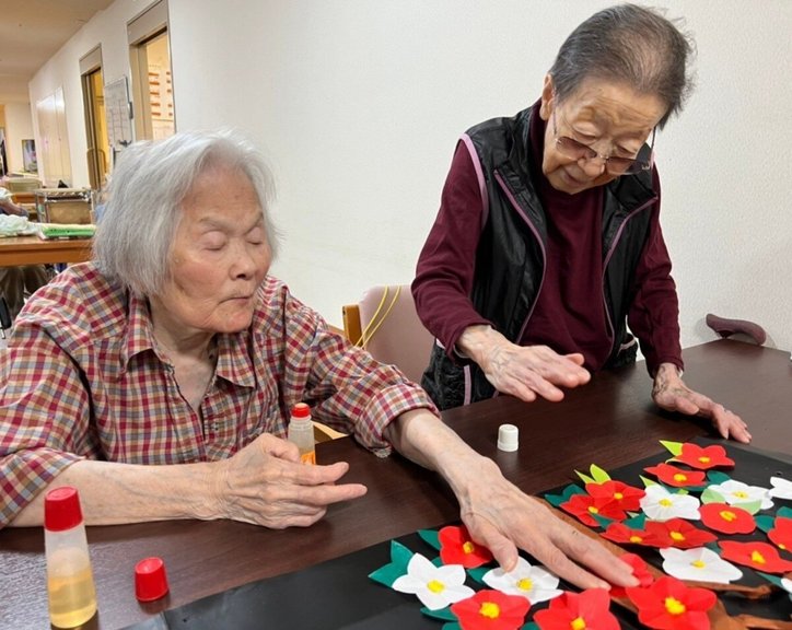 『あらぁ!きれいねぇ!』リビングでは、奥様方が熱心にお製作中です。