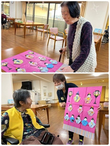 ご入居者様を更にパッと明るくさせる手作りの雛飾り