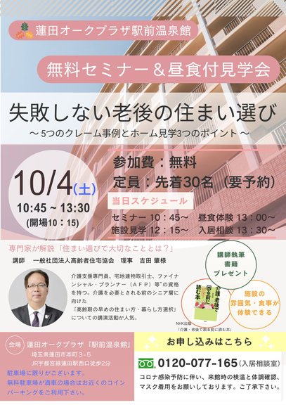 10月4日(土)開催「失敗しない老後の住まい選びセミナー」