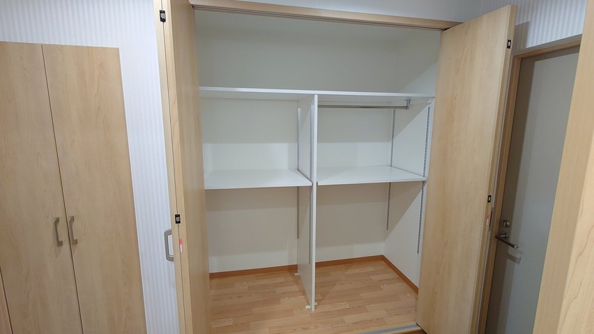 玄関脇の収納部も高さ調整式の棚板を設置いたします。