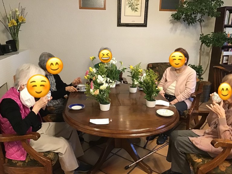 完成した後は恒例のティーパーティ☕️お花を眺めながらお客様同士でゆっくりお話しされ和やかな空間に。