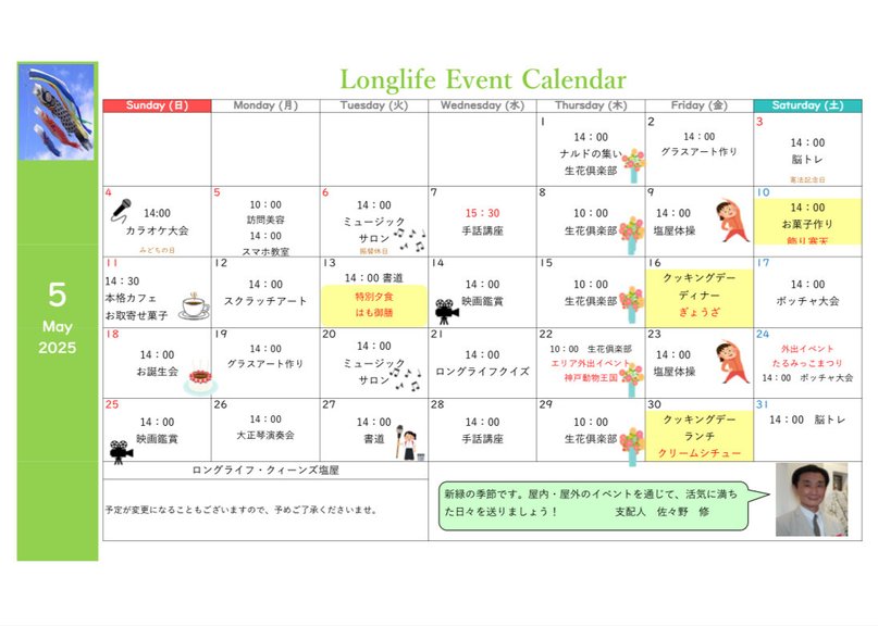 ロングライフ・クイーンズ塩屋では、5月も皆様に楽しんでいただける外出イベントを企画しています!