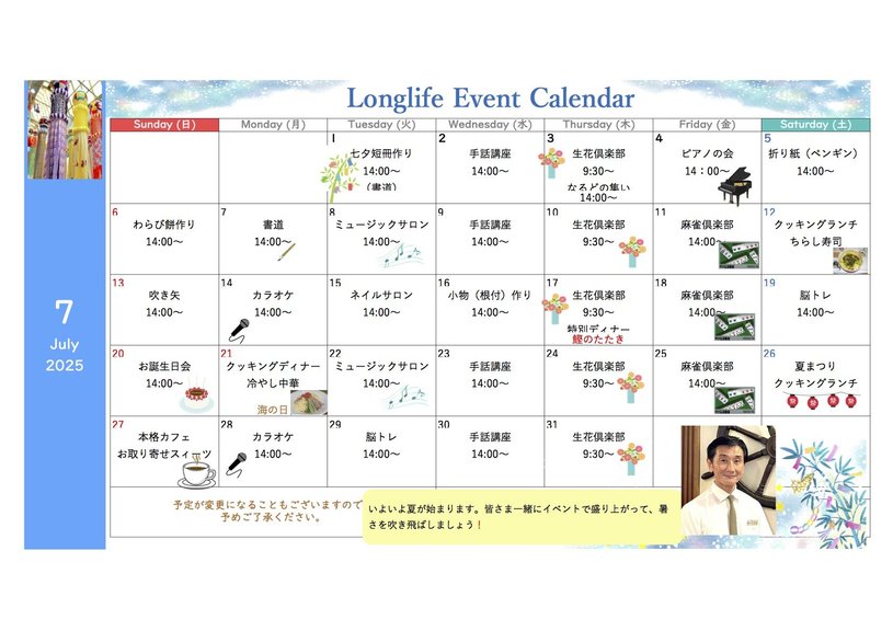 ゲームや特別なお食事もご用意し、ご家族様のご参加も大歓迎です。