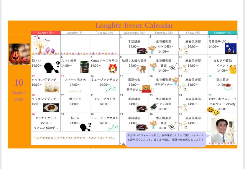 秋の深まりを感じる10月。ロングライフ・クイーンズ塩屋では、心躍るイベントをご用意しました!😊