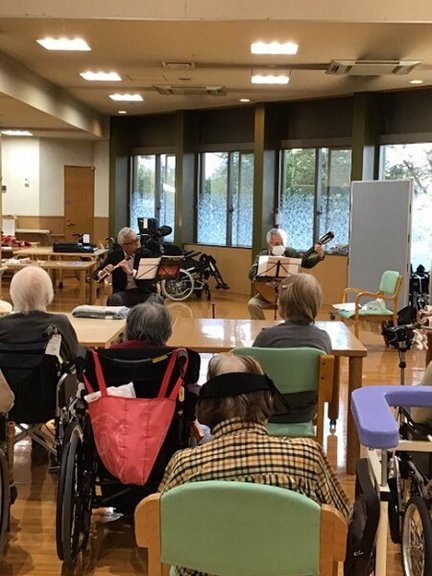 介護居室にて、一般居室にお住まいのご入居者がボランティアで“フルートとギターのコンサート”を開催してくださいました♪