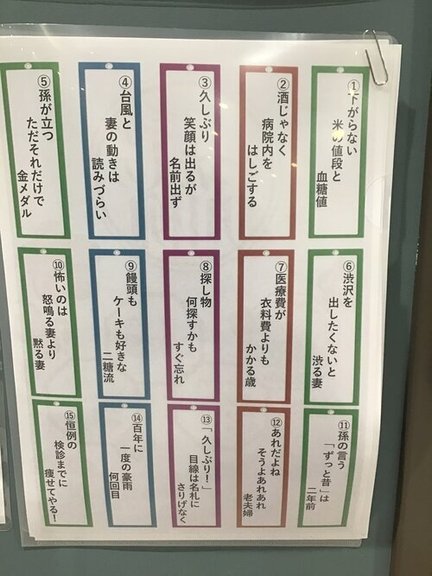 リハビリの一環で皆様に、身近な川柳が配布されました。