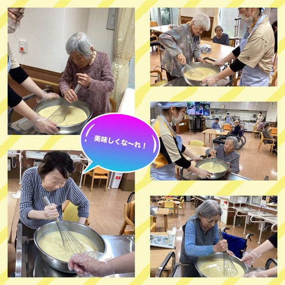 たこ焼きの生地を作り、入居者様に混ぜて頂きました!