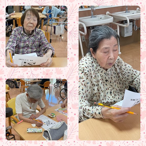 職員が話し掛けると、「これなんやろ?」「これかな?」等と仰り、一生懸命解いておられました。