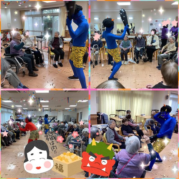 【鬼は~外!!福は~内!!】とご入居者の皆様は落花生を投げていらっしゃいました。