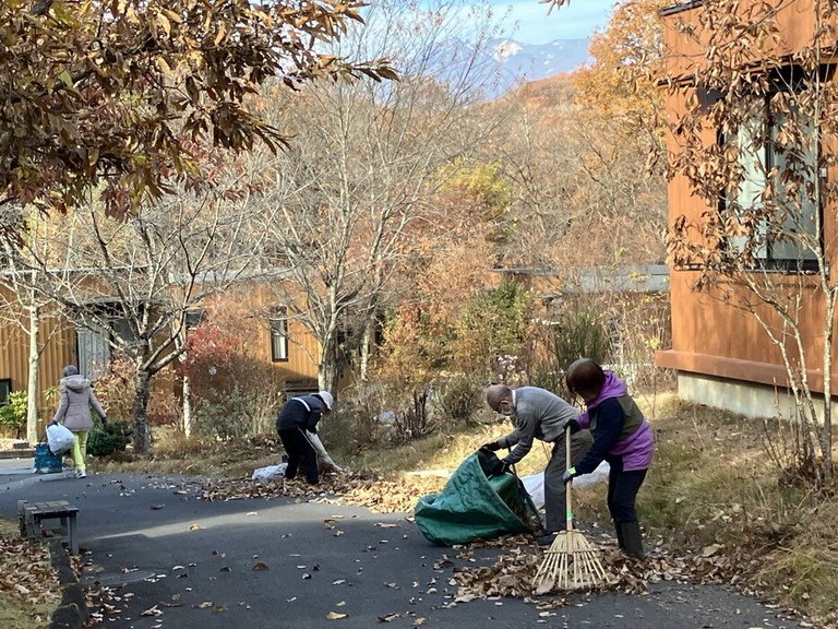 11月下旬、毎年恒例の落ち葉集めがありました。