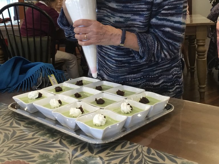 お客様には、抹茶を混ぜたり、プリン液を丁寧にこしたりと、さまざまな工程に挑戦していただきました。仕上げにはホイップクリームを絞り、美しい見た目に仕上げます✨
