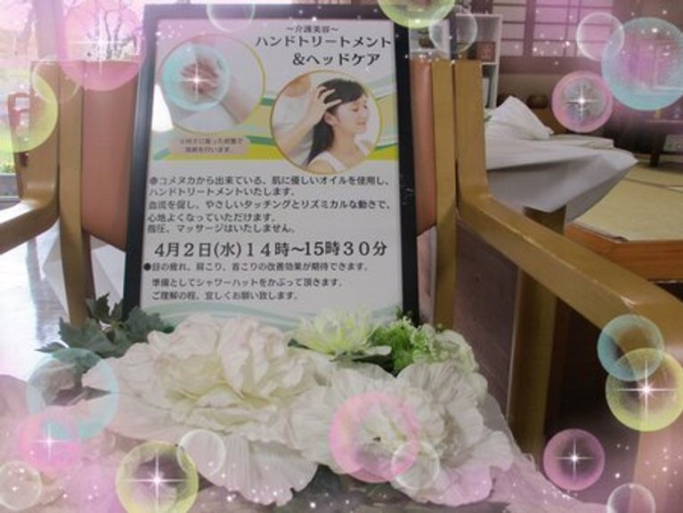 4/2(水)に介護美容の方にお越しいただき、ハンドマッサージ・ヘッドスパを体験していただきました♪