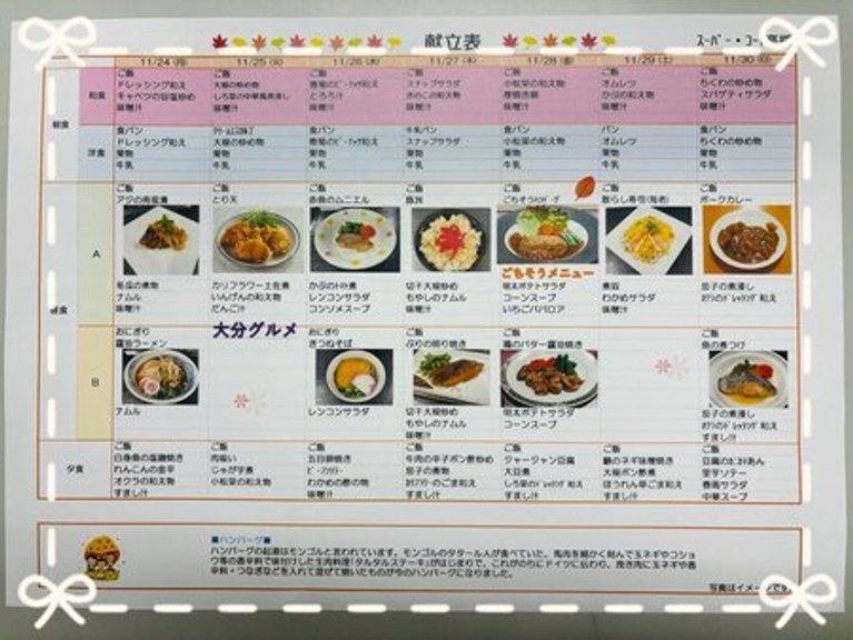 11/17(月)~11/30(日)の献立をご紹介しますね(^^♪