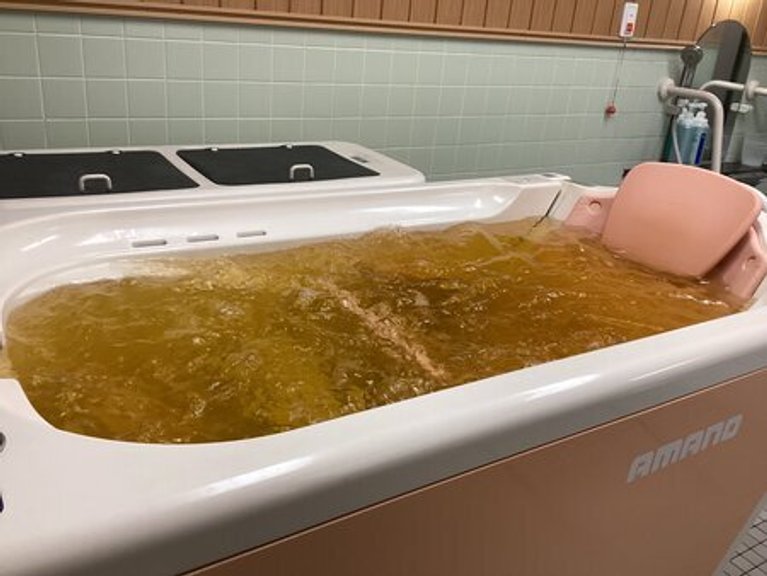 オレンジ色のお湯で、ゆっくり体を温めて頂きました(*^^)v
